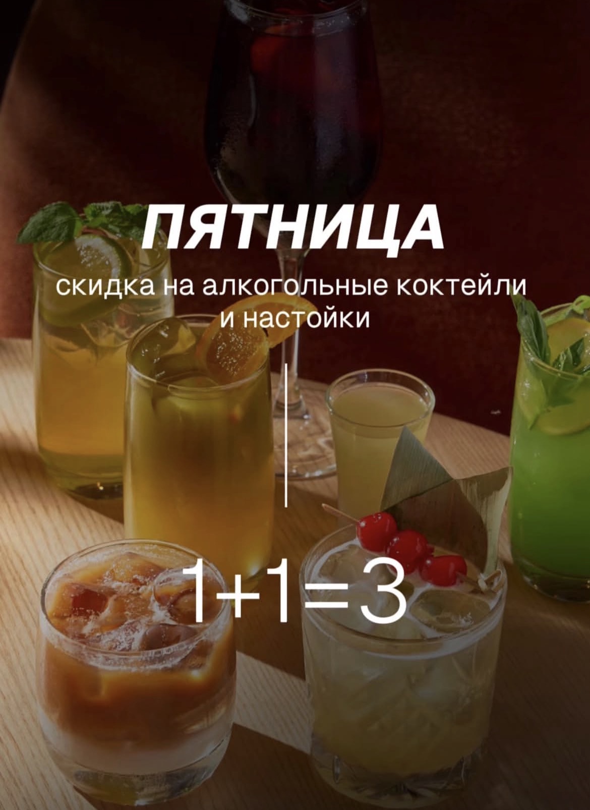 1+1=3 на коктейли и настойки каждую пятницу в Грелке Гуделке!